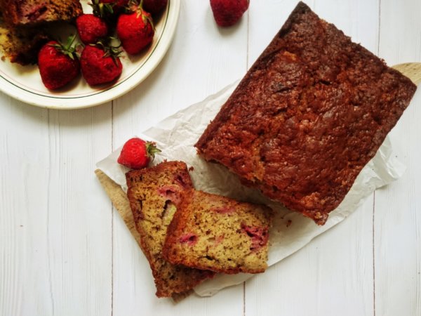 Még mindig epret teszek mindenbe, ami a kezem ügyébe akad, most éppen a banánkenyérbe került belőle, de hát ki is kell használni az eperszezont, nem igaz? 🙂
